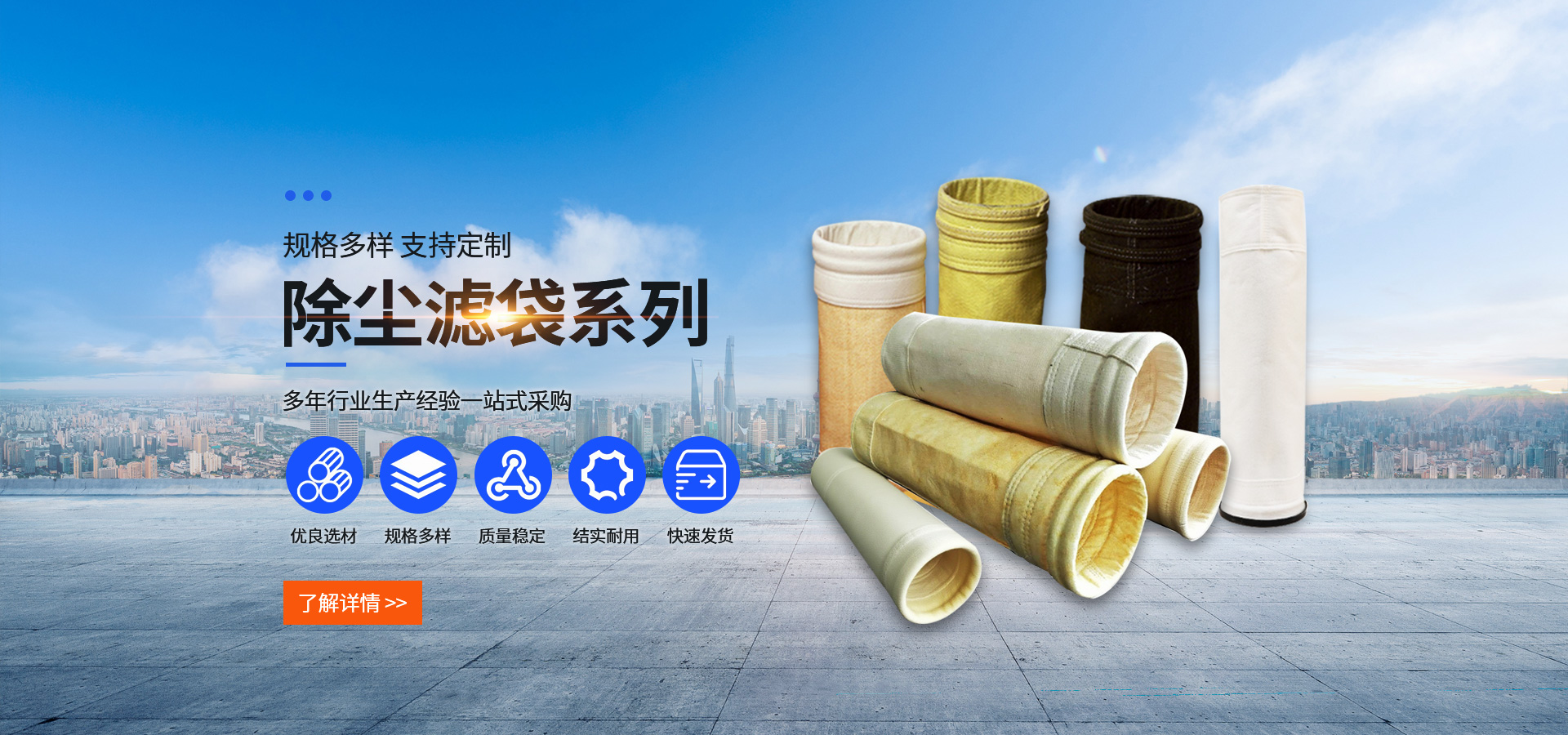 除塵布袋清洗的主要工藝流程:1、清灰:采用高頻震動,將進入濾袋壁內(nèi)的較大的灰塵粒子全部清除,并不會對纖維的纏結(jié)牢度產(chǎn)生影響,保持濾袋良好性,污垢的易剝離性。2、...